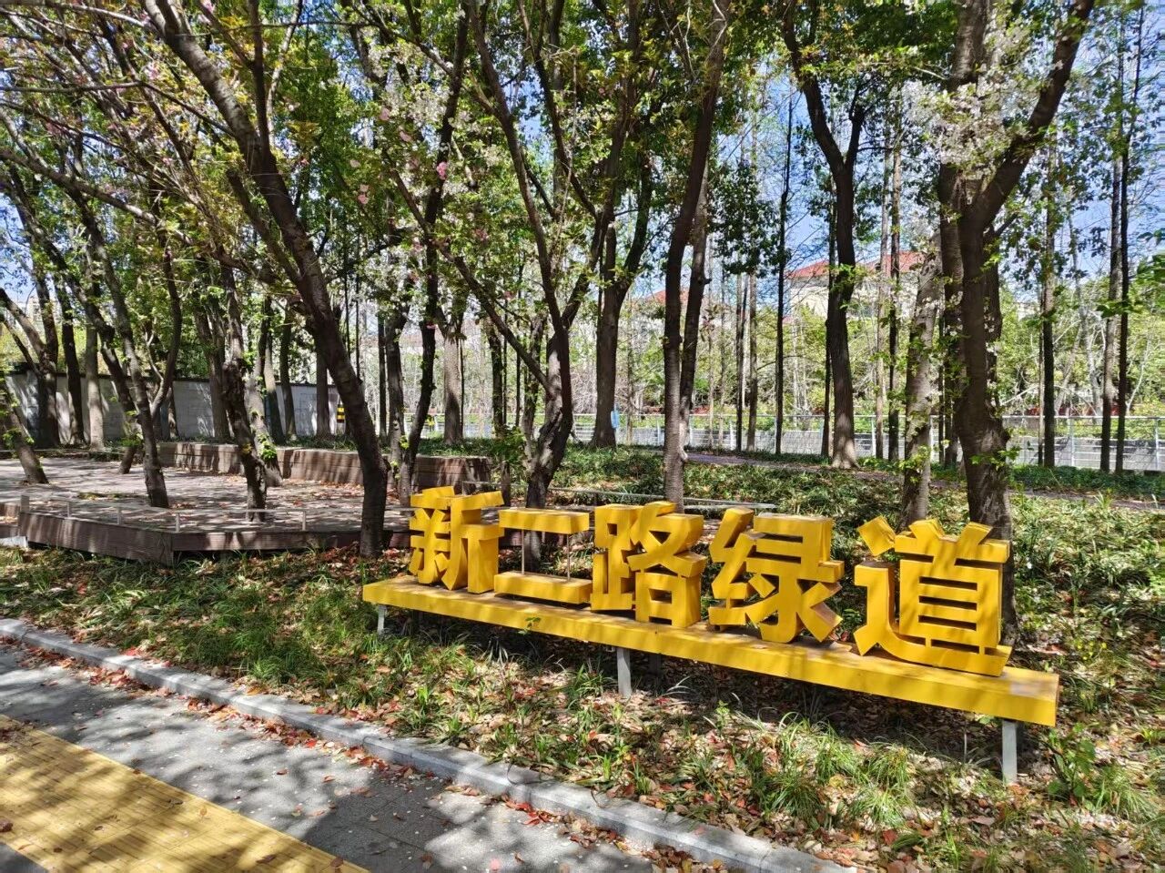 在公园的对面,还有一条新二路绿道,是平日健身休闲的好去处,在春日的阳光下,有着独特风景。 这个周末,不如就不出远门了。让我们来到家门口的公园里,感受春天的气息。