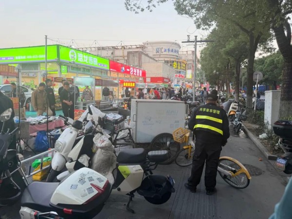依托综合网格党建联席会议统筹各方力量,针对问题症结、堵点,创新推出 “分隔+扩区”“调度+快处”“专职+巡查”三类工作举措。   以“分隔+扩区”释放商圈停放空间。与虎城商圈协商制定方案,结合市民出行规律、商圈人流走向,对区域内人行动线与非机动车动线进行物理分隔,避免人车混行带来的通行拥堵与安全隐患,同时结合实际拓展非机动车专用停放区域,通过加装停车围栏、设立停放指引牌,有效增加近100个非机动车停放位,缓解一定供需矛盾,释放商圈停放空间。 以“调度+快处”加快地铁站点清运频次。高峰时段,依托城运中心“实时视频巡查+智能调度指挥”,联动美团、哈啰、青桔三家共享单车运营企业,实现问题点位快速处置。通过城运中心统筹调度,将高峰期短驳清运频次由原有30—60分钟/轮,加密至15—30分钟/轮。同时实行三家企业轮值驻点,运维人员全程在岗、随满随清、即堆即运,严格以不堵塞出入口、不占用人行通道为标准,为站点单车流量装上 “调节阀”。 以“专职+巡查”巩固长效整治成果。依托城运中心,聘请第三方设立共享单车管理专职岗位,进一步压实日常巡查管控与常态化整治责任。紧盯早晚通勤、外卖配送等高流量时段,加密全域巡防频次,及时开展车辆规整、点位归位;针对人流车流密集的重点区域,提前联动清运力量做好应急备勤,对散乱停放车辆统一疏导至规范位,同步增设警示标识、划定停放边界,筑牢长效防线。