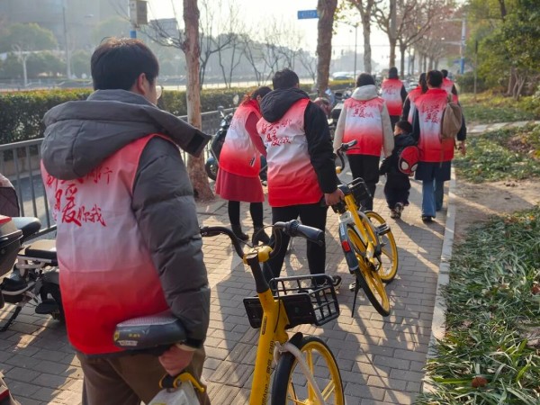 网格引领聚新群 全民共治固长效 在落实三类工作举措的基础上,网格持续深化党建引领,积极发动沿街商户、新就业群体主动融入非机动车停放共治行动。一是挖掘街区商户共治力量。择优吸纳经营年限长、熟悉片区的优质商户担任街区街长,在常态化收集商户诉求的同时,牵头带动周边商户每日开展“10分钟门前车辆规整”行动,自觉落实门前共治责任。二是组建新就业群体志愿队伍。依托新兴领域党员志愿服务队,固定每月5日、15日、25日,集中开展地铁出入口及周边共享单车专项规整;依托“闪帮”骑手志愿服务队,发挥快递外卖骑手走街串巷、点位熟、路况清的优势,常态化落实“随手拍、随手记、随手报”机制,第一时间摸排上报车辆乱停放隐患问题。同步建立志愿服务激励机制,以积分兑换电子荣誉证书、专属荣誉徽章等暖心奖励,充分调动全民参与积极性,持续扩大志愿服务队伍,筑牢非机动车长效治理的社会共治根基。
