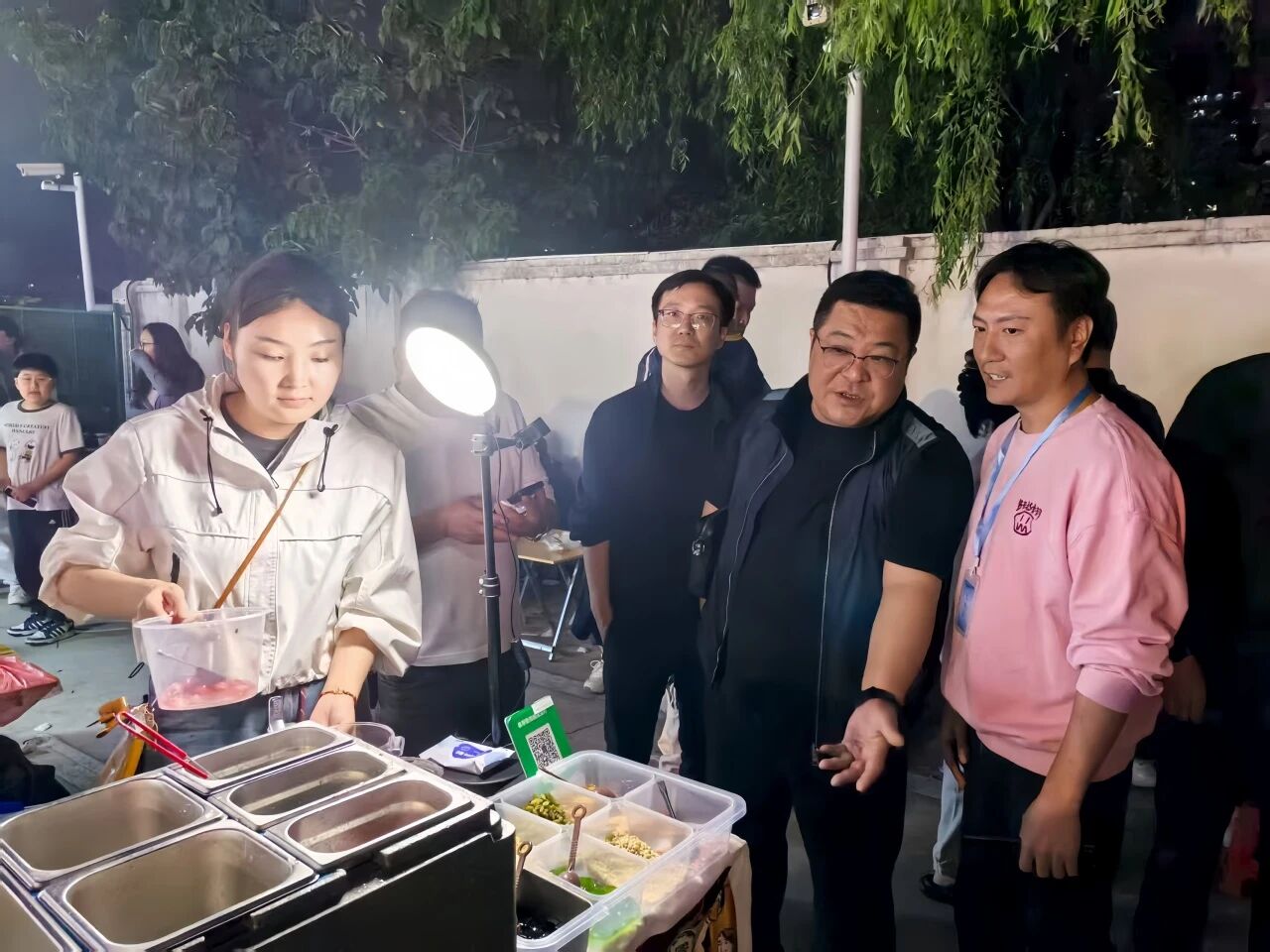 为了让夜市更好地运营,镇综治中心牵头下,委托第三方单位进行统一管理,制定详细管理规定和操作流程,明确摊位经营时间、消防安全要求等。同时,统一提供基础水电、消防设施、移动厕所、车辆停放区域等,安排多名保洁人员清理现场垃圾,维持场地整洁。