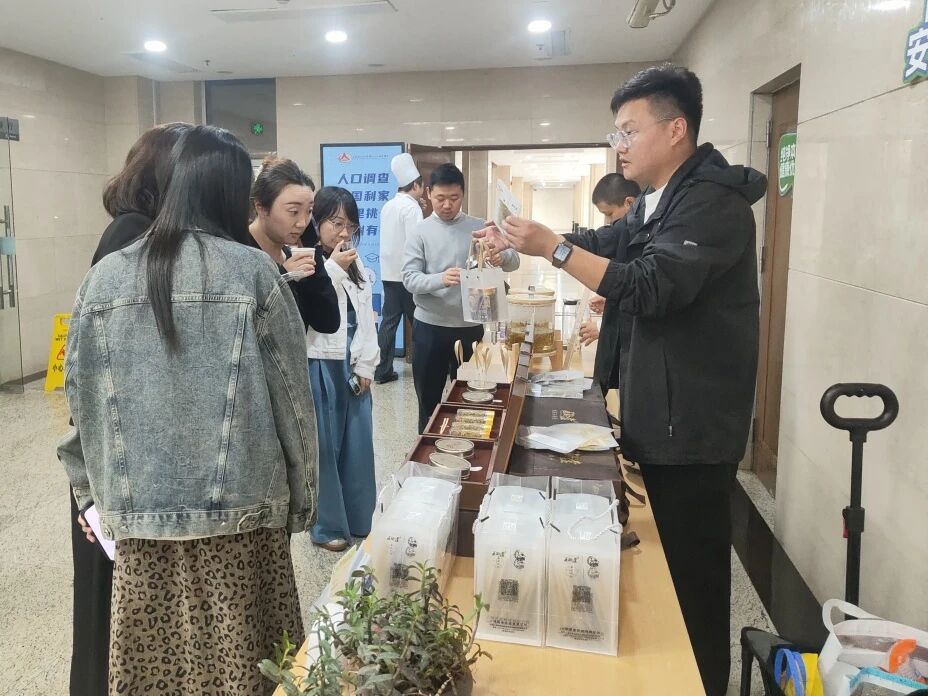 “生态罗泾 四季有礼”。10月30日上午,区驻村工作组联合罗泾驻村选调生小组在区政府一楼餐厅门口举办罗泾秋季名优农产品推介活动。罗泾镇宝锦农业、景瑞农业、磊宏科技、美馨园艺、普圆食品、百果园等7家农业企业及农户积极参与,各驻村指导员与选调生主动走进展台,化身“泾彩推荐官”助力产销对接,以务实举措推广本土优质农产品,为乡村振兴工作注入实践动能。