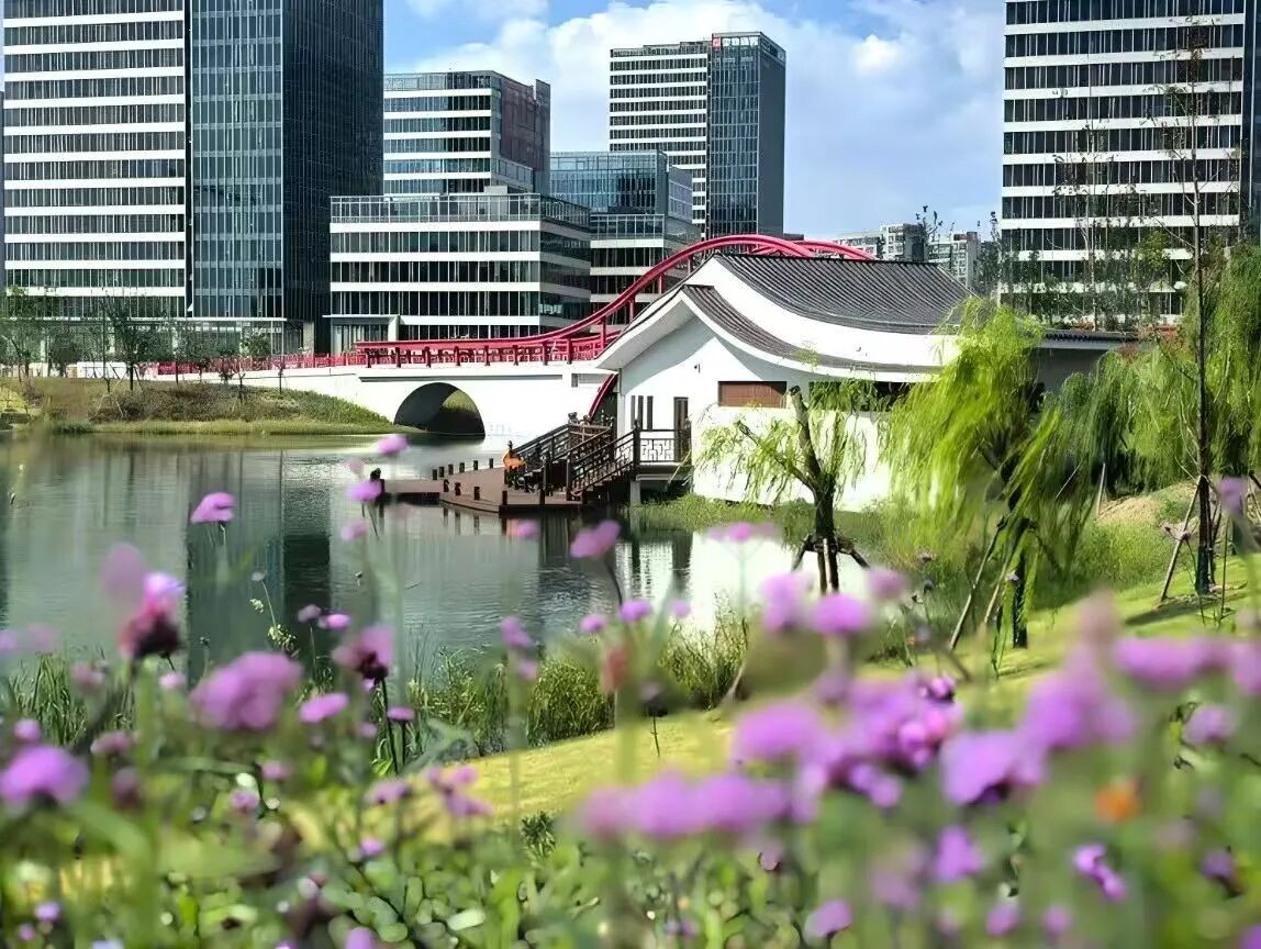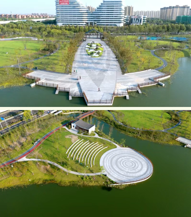 无界设计,连接城市与自然  美兰西湖公园坐落于宝山区罗店镇,东起沪太路,西至罗店路,北靠美健路,南邻美兰湖路,占地面积约11.47公顷,其中绿化面积5.03公顷,水体面积4.4公顷,是一座连接城市自然和罗店本土文化的现代化社区公园。采用创新的“无界设计”理念,打破传统公园边界,以罗店最具代表的“三湾九街十八弄”的水乡街市为灵感,构建立体化景观空间层次,让风景自然渗入城市肌理。  2025年5月,美兰西湖人行桥正式开通,短短几分钟即可从公园步行至中集金地广场,让自然与城市不再是对立的两端,而是相互依存、相互交融的整体,真正实现了“园在城中,城在园中”。2025年6月,随着公园二期的竣工完成,新增的74793平方米建设面积,进一步构建了公园里一幅幅如诗如画的景致。  一园两区,漫步水乡画卷 东园环湖漫步:千米主园路串联起林波桥、青澜桥、风荷桥三座景观桥,沿途可赏樱林、阳光大草坪、湖滨广场、杉影林等多处景点,步移景异,心随景舒。  西园亲子悠然:滨河步道沿河伸展,花溪桥与沐香亭点缀其间。“泡泡森林”“星河互动乐园”等空间,让孩子在自然中探索学习,乐趣无穷。  文化为魂,四季皆有风景 公园巧妙融入了罗店丰富的非遗与文化元素:“花神”“龙船”“彩灯”等符号化身景观小品,述说着“春有花神秋有画,夏有龙船冬有灯”的岁时风情。2025年罗店暖春灯会在此举办,大型塔灯、文创蝴蝶灯、水上莲花灯交织成璀璨夜景,配合国潮汉服秀、环湖跑等活动,让传统文化在当代生活中鲜活绽放。