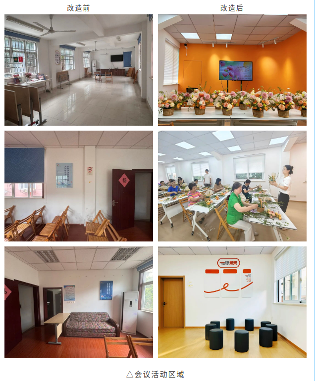 为深入贯彻落实“人民城市”重要理念,对标基层治理现代化要求,高境镇以居委标准化建设“上星工程”为契机,深耕境享·心享“四城”一居一品社区服务品牌建设,开展了一场兼具系统性、创新性与示范性的全面改造,实现“最后一公里”的高品质服务。本期邀您一起走进高境一村第一居民区党群服务站。 高境一村第一居民区党群服务站位于殷高西路142号,现辖区内共有2161户居民。此次改造不仅是物理空间的迭代升级,更是社区治理理念的深刻变革。我们以“凝心聚力”为核心,以“七彩社区一道来”为品牌载体,把党建引领、多元共治、全龄友好融入社区治理理念,办公空间做减法,服务体验做加法,让服务更精准地触达每个年龄段的居民需求,让老百姓能“走进来,坐得下,还想来”。 本次改造的核心,是推动党群站点从传统的行政管理空间转变向汇聚人气的“居民第二客厅” ,让社区治理从“被动响应”转变向“主动参与”。为此我们引入了@+七彩社区的理念标识,@符号最初是代表了想要引起他人的注意,以@符号为灵感的 logo,象征了社区对居民的呼唤,让居民“at”(在)这里共创共享美好生活,携手书写幸福篇章。 logo运用“七彩社区”理念串联成线,以红色为起点代表党建引领,如丝带连接不同层面与元素,呼应居民联系互动,更传递着社区的创新活力、包容精神与多样色彩。 曾经,高境一村第一居民区党群服务站面临着诸多困境,传统行政化的办公布局,老旧的基础设施难以满足全龄需求,单一的办事功能缺乏社区温度,让这里的一切显得陈旧而缺乏生机。面对这些问题,社区秉持“七彩社区一道来”的核心理念,深度挖掘“七彩社区”特色,用七种颜色进行社区改造,每一种颜色都代表着独特的社区功能与服务。 党建(红色)如灯塔,指引社区发展,“一道来办事”打造高效便捷的“一站式”综合服务枢纽,涵盖首问接待、居委融合办公、社区事务办理等多项服务,便捷高效且体现党组织关怀。 邻里(橙色)是温暖纽带,“一道来聚聚”打造社区艺术展、百姓大舞台、社区沙龙等公共交往空间,为居民搭建起交流平台,重构邻里亲情,涵养社区温度。 成长(黄色)是未来希望,“一道来玩玩”精心规划儿童驿站与阅读天地,为孩子打造安全、有趣的“家校社”联动成长空间。 共享(蓝色)是智慧汇聚,“一道来阅读”提供图书馆、自习室等场所,营造社区知识共享的境享空间和共同学习的良好氛围。 文明(浅绿)是和谐基石,“一道来坐坐”设立居民议事厅,畅通议事渠道,让居民方便参与社区治理,打造 “大家的事情大家一起商量”的民主实践平台。 健康(粉红色)是活力源泉,“一道来动动”开放排练室和瑜伽室,为健身运动提供丰富选择,构建 “家门口”的健康促进中心,激发社区生命活力。 互助(紫色)是关爱体现,“一道来关心”涵盖心理疏导、为老服务、健康咨询等服务,为弱势群体提供贴心关怀,织密 “全龄段、全方位”的社区守护网。 这种以色彩为标识的功能分区,让办公空间最小化、服务空间最大化、公共属性最优化,让服务变得可视化、场景化,实现了从“人找服务”到“服务引人”的转变,真正让老百姓“愿来、爱来、再来、还想来”。 如今的高境一村第一居民区党群服务站不再是冷冰冰的办公场所,而是充满活力与温情的社区家园。随处可见居民办事、学习、休闲、议事的生动场景,孩子们在儿童驿站嬉笑玩耍,老人在老年友好空间享受悠闲时光,邻里在公共客厅谈天说地,共同为社区发展出力。一个有温度、有色彩、有活力的社区生活共同体已然形成。