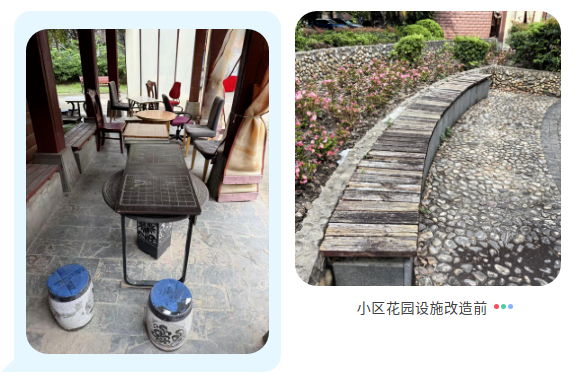 如今,改造后的公共设施实现了由内而外的蜕变。爷叔们在崭新的棋牌桌上切磋棋艺,无须再担心桌椅摇晃散架的风险;花坛边缘更换了防腐木条的休闲座椅,让居民可闲倚木栏,赏花弄草,沐浴暖阳,享受惬意时光;宽敞明亮的花园凉亭则成为了社区最具人气的公共客厅,居民或凭栏闲谈,或闭目休憩。凉亭虽不大,却像一条温情的纽带,将方寸之地化为心灵的港湾。
