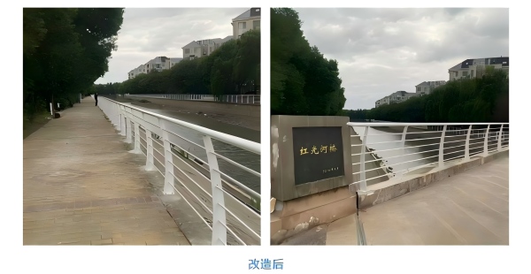 2部门协同 居民区积极搭建沟通桥梁,向相关部门反馈居民诉求,全力协调各方资源,最终在大场镇河长办的支持下,改造工程迅速启动,将老旧木质护栏全面更换为坚固耐用的新型金属护栏,并对关键部位进行加固。