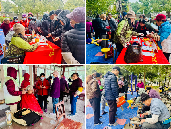 12月24日,海江二村36号小花园内暖意融融,海江二村一居党总支牵头的“便民服务暖人心”活动在此开展,把贴心服务直接送到居民家门口。这场便民活动堪称微型“民生服务集市”,服务品类丰富又接地气。咨询区的专业人员,细致解答居民关于法律纠纷、就业政策的各类疑问;“蓝天下的至爱”凡人善举活动同步推进,让社区温情在现场传递。实操服务摊位更是人气高涨:医护人员为老人量血压、测血糖并给予健康指导,理发师为居民修剪发型,磨刀师傅的磨刀石旁排起刀具长队,耳穴保健服务也吸引不少居民体验。党支部书记还贴心搀扶行动不便的老人称体重,现场处处是温馨与欢笑,居民在享受便利的同时,更真切感受到社区党组织的关怀。