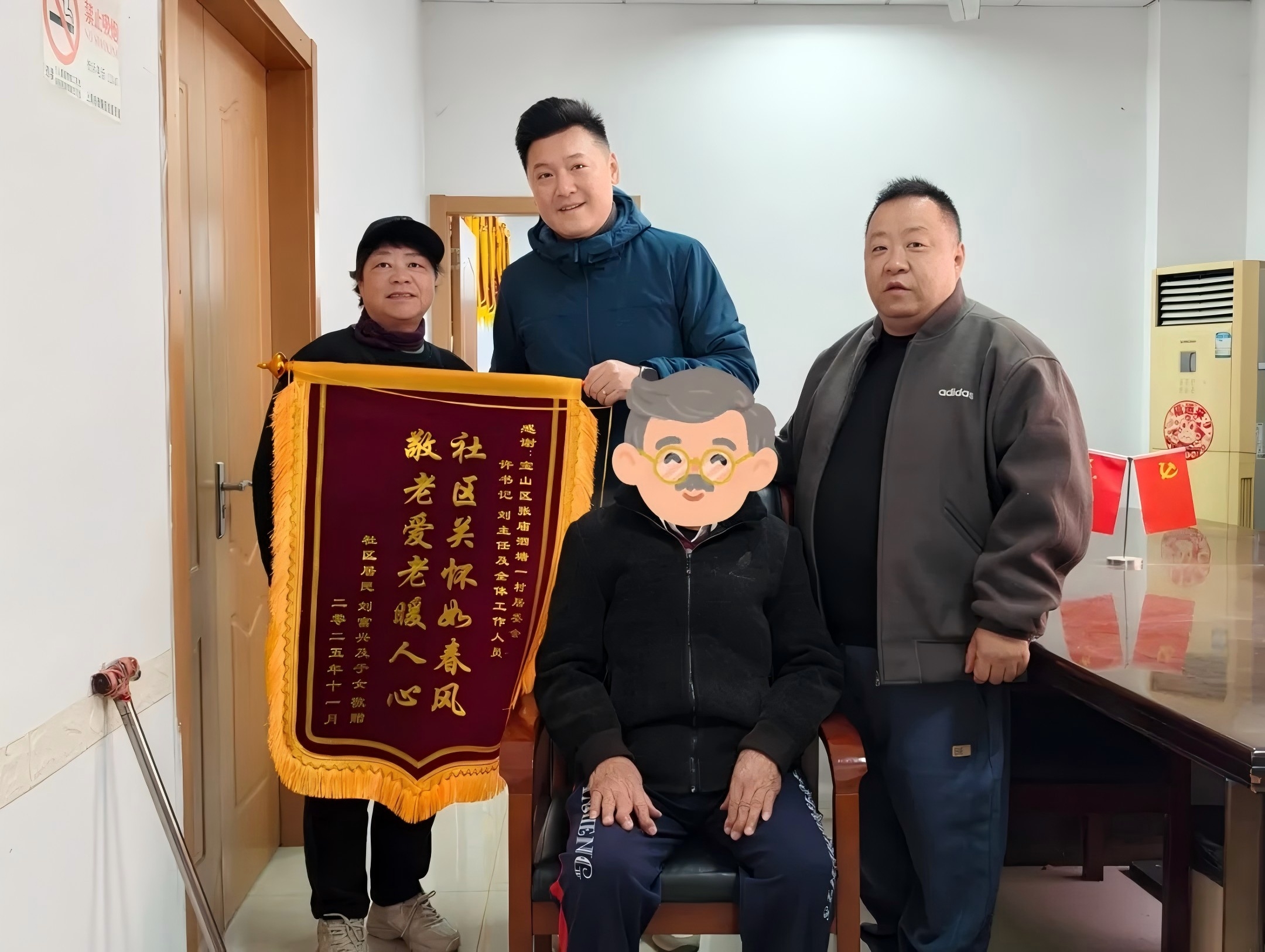 近日,家住张庙街道泗塘一村的高龄独居老人刘爷爷的家属带着感谢信和锦旗,专程来到街道办事处和泗塘居委会,分别送上了感谢信和锦旗。老人家属紧紧握住工作人员的手,反复说着:“多亏了你们,我父亲的日子才过得踏实又暖心!”