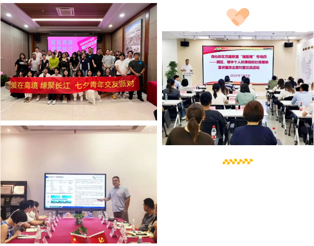 与此同时,精彩纷呈的活动也在其他园区接连上演。七夕当天,长江软件园内洋溢着甜蜜温馨的氛围,“四区”单身青年共同参与了“爱・在高境,缘・聚长江”联谊活动。在复旦软件园,街区党支部携手赤道环境评价股份有限公司,为园区企业带来绿色低碳节能领域的实践案例与经验分享。而在北大科技园,街区党支部特邀税务局专业讲师,为企业深入讲解个人所得税和社保缴纳政策,帮助企业和员工提升税务认知。 	“四区”联动正在持续深化,接下来还将共同参与镇总工会主办的“幸福高境路 科创小镇行”城市定向赛等系列活动,努力为“四区”年轻人搭建“友谊桥”“幸福桥”,让更多青年在这片热土中找到归属感与甜滋滋的小幸福。