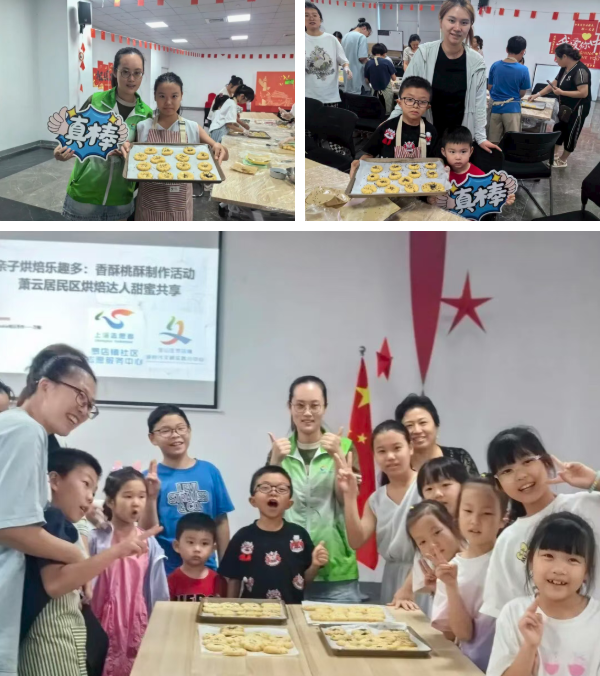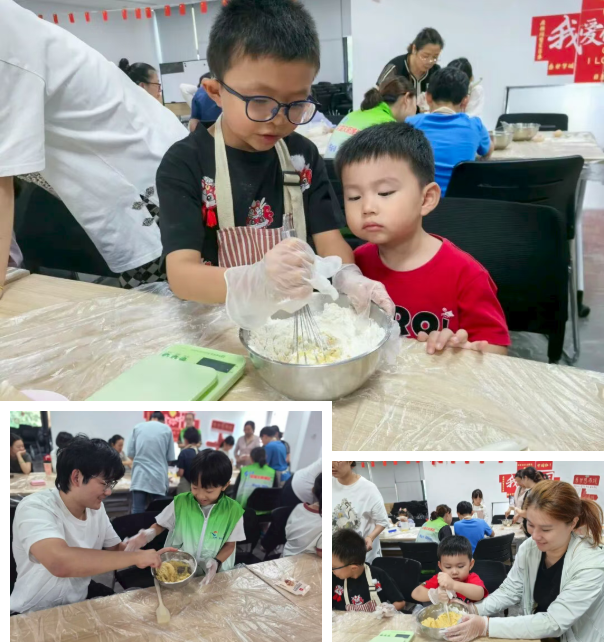 当金黄酥脆的桃酥从烤箱中取出时,孩子们迫不及待地拿起自己做的“作品”,举到家长面前分享,脸上满是自豪与喜悦,家长们则笑着品尝,眼里的温柔藏不住对孩子的夸赞。