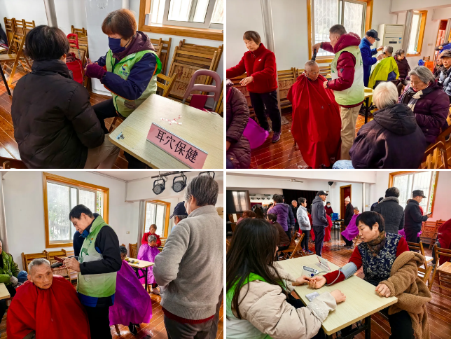 “我来测血糖了,你们居委开展的便民活动太有用了,真的很感谢居委,给我们提供了方便!”居民黄阿姨在海江二村第二居民区153号小花园开心地说道。原来,这里正在举行一场以“暖心服务进社区,便民惠民筑和谐”为主题的志愿服务活动。此次活动由海江二村第二居民区党总支牵头,联合海江新村“啄木鸟”志愿者团队、上海通大中医志愿者团队以及共建单位宝山区城投水务共同开展,主要服务内容为量血压、测血糖、义务理发、磨刀、照片塑封等。当天天气寒冷,考虑到天气原因,党总支将部分活动放在室内(122号活动室)进行,让居民免受寒冷空气侵扰。此外,还有宝山禁毒办参与宣传,让大家对禁毒知识更加了解。多方力量的共同努力下,不仅让服务内容更加丰富,也践行了社区共建共治共享理念。