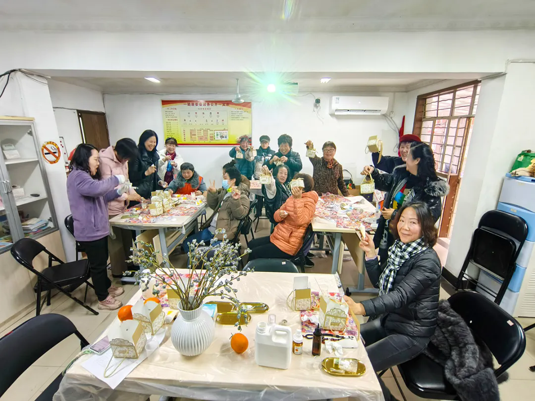 活动现场暖意氤氲,社区工作人员早已将天然植物油、香薰精油、分装盒等原料整齐摆放。结合小寒节气防寒护肤需求,授课老师聚焦“节气养生+实用护肤”,用通俗的语言详解适配冬季的精油品类、滋养功效与搭配技巧,把专业护肤知识送到居民身边。DIY环节一开启,便成了邻里互动的温馨舞台:居民们兴致勃勃围坐一堂,有的帮老人精准称重原料,有的分享独家护肤小窍门,有的精心调配专属香氛,阵阵笑语在活动室里回荡。陌生邻里在协作中熟络,党群阵地化身邻里共治共享的温情空间。活动尾声,大家手持亲手制作的护手霜合影,将这份暖冬里的美好瞬间永久定格。此次以小寒节气为契机的DIY活动,既是党建引领下的便民服务实践,更是凝聚邻里情感的暖心纽带。不仅让居民学会了实用的护手技能,更消融了邻里隔阂、凝聚了社区向心力,勾勒出“邻里互助、共建共享”的和谐画卷,赢得居民一致点赞。有居民笑着说:“这份亲手做的暖心礼物太贴心了!和邻居一起动手、唠家常,满是幸福感。”