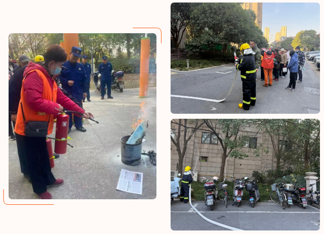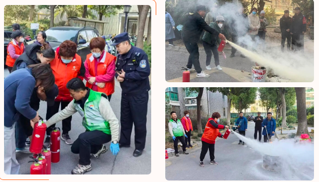为筑牢社区安全防线,让消防技能真正走进日常生活,近日,高境镇各居民区组织开展“沉浸式” 消防安全培训演练。从理论讲解到实操体验,全程干货满满,让居民们 “听得懂、学得会、用得上”! 演练伊始,社区民警和居委工作人员详细讲解了消防面罩、灭火器等器材的正确使用方法,并现场示范,让参与者亲身体验操作流程。“提、拔、握、压、喷!” 随着居委工作人员的清晰口令,干粉灭火器实操环节正式开启。消防员现场示范正确操作步骤后,居民们纷纷踊跃上前亲身体验 —— 从初次上手的略显生疏,到反复练习后的熟练操作,大家在专业指导下亲手解锁了灭火器使用技能,真正实现了从 “纸上谈兵” 到 “实战应用” 的转变,安全感满满!