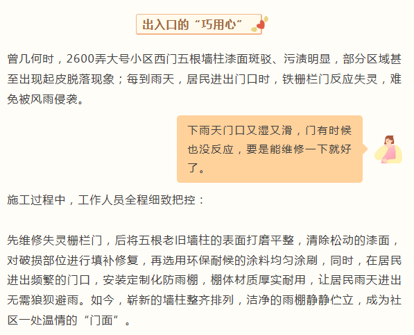 康桥水都社区聚焦居民日常出行的“关键小事”,以“绣花功夫”破解民生痛点,将幸福感藏在每一处贴近生活的细微改变里。