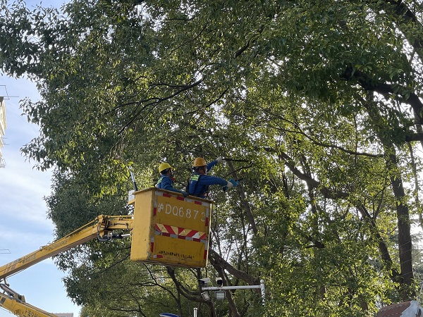 03/ 实施过程 专业作业重规范,全程监督保实效 在形成统一修剪方案后,党总支全程跟进监督,确保工程安全、有序、便民: 1. 有序组织,保障施工 施工前,物业提前通知并引导居民挪移车辆,减少施工影响。作业期间,绿容部门专业队伍携带高空作业车、油锯等设备进场,严格按“去弱留强、通风透光、消除隐患”的专业原则进行修剪。 2. 文明作业,即时清理 坚持“修剪一段、清理一段、场清地净”,及时清运枝条,最大限度减少对居民出行和小区环境的影响。 3. 居民反响,成效显著 修剪工作获得居民高度认可。多位居民表示:“家里亮堂了,心情也舒畅了”“悬着的枯枝清理了,感觉安全多了”“施工规范、清理及时,实实在在为我们办了好事”。