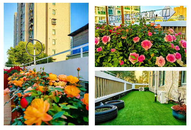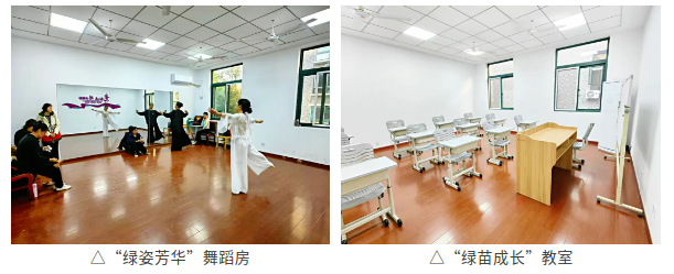 拾级而上,文化与生活的气息扑面而来。这里是社区议事、文化滋养与兴趣成长的融合空间。 “绿韵共商”会议室里,宽大的实木会议桌沉稳庄重。这里不仅是党建引领、凝聚共识的阵地,也是“三驾马车”协同运转、共商社区之事的议事厅,民主协商的氛围在此凝聚。 兼具居民议事与阅读功能的“绿阅雅阁”,充满了书香气息。“书山有路勤为径”的意境,鼓励居民在此阅读思考,也时刻欢迎他们为社区治理建言献策,让居民声音被听见、被重视。 明亮的“绿姿芳华”舞蹈房,是社区文艺爱好者们的“打卡地”。整面落地镜为阿姨们提供了绽放风采的舞台。“绿苗成长”教室则是孩子们放学后的安心港湾。结合高境镇“境享花开”品牌开设的四点半课堂,让孩子们享受同伴陪伴与趣味学习的同时,也解决了双职工家庭的实际难题。  而“绿悦晚晴”退役军人服务站暨老年活动室,舒适的沙发、齐全的设施,为长者们提供了一个可以休息、聊天、阅读的惬意角落。冰箱、饮水机等贴心细节,让这里充满了家的味道,真正实现“老有所乐”。 登上三楼,豁然开朗。曾经的闲置平台,如今已成“绿野仙踪”空中花园。木质廊架、休闲桌椅、缤纷花箱与一方绿茵草坪巧妙布局,宛如一个嵌入社区的迷你花园。 这里不仅是居民闲坐观景、孩童嬉戏的乐园,夜幕降临时,灯光点缀下更成为小区一抹亮丽的风景线,这片空中绿洲,与小区原有的墙体颜色遥相呼应,将“低碳、环保”的理念从口号变为可触可感的生活场景,完美契合了“雅韵绿城”中“绿”的深层内涵——不单单是颜色,更是生活方式与社区品质。