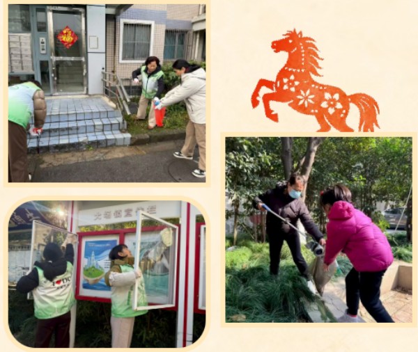 大华一村四居、乾溪七居、城市绿洲一居等居民区纷纷开展节前环境卫生整治行动。社区党员、热心志愿者、社区小先生、社工们齐上阵,擦拭宣传栏、清理绿化带、铲除小广告,不放过任何一个卫生死角。经过集中清扫,小区面貌焕然一新,大红灯笼与干净步道相映成趣,以清爽姿态迎接马年新春的到来。