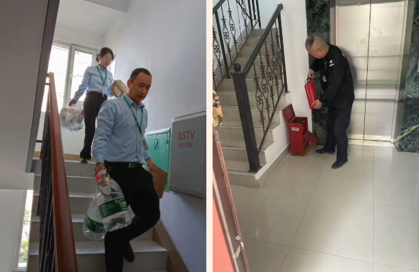 同时,坚持楼道堆物动态清零,严禁在楼道、疏散走道、电缆井或管道井内堆放纸箱、旧家具、鞋柜等杂物。此外,为确保消防设施完好有效,对各楼栋的灭火器、消火栓、应急照明灯、疏散指示标志等设施每月开展巡查,确保压力正常、配件齐全、随时可用;一旦发现损坏或缺失,及时维修补充。通过日常巡查与集中清理相结合,力求隐患早发现、早处置。