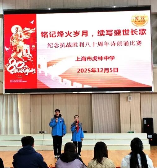 12月5日“铭记烽火岁月,续写盛世长歌”主题朗诵比赛在上海市虎林中学体育馆隆重举行并圆满落幕。本次活动旨在通过朗诵的艺术形式,引导学生重温波澜壮阔的革命历史,感悟伟大抗战精神与民族复兴历程,激发新时代的爱国热情与奋斗担当。活动在嘹亮的国歌声中开启,声音成为了穿越时空的桥梁。烽火回响,历史在声音中苏醒。