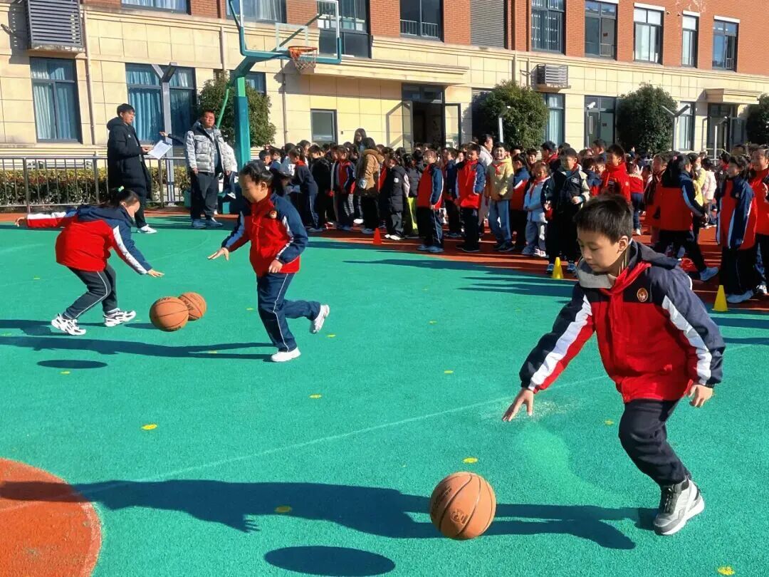 啦啦操社团接棒热场,高抬腿、齐舞跳转活力满溢,整齐划一的队形瞬间将现场氛围推向高潮,为赛事节奏注入满满元气。 赛事圆满落幕,颁奖环节正式开启。特邀嘉宾为获奖队伍、MVP球员颁发奖牌和奖杯,同时为全体参赛小球员们送上刻有赛事标识的定制纪念章。孩子们双手捧着属于自己的荣誉,嘴角扬起藏不住的笑意。  同样不容错过的,还有各年级小将们提前上演的精彩较量!他们虽未登上决赛舞台,却早早用热情点燃了整个赛程。一、二年级的运球接力赛堪称“萌力速度双杀”!三年级的传球比赛和趣味投篮高能持续,活力拉满!四、五年级硬核对战更是燃爆全场!