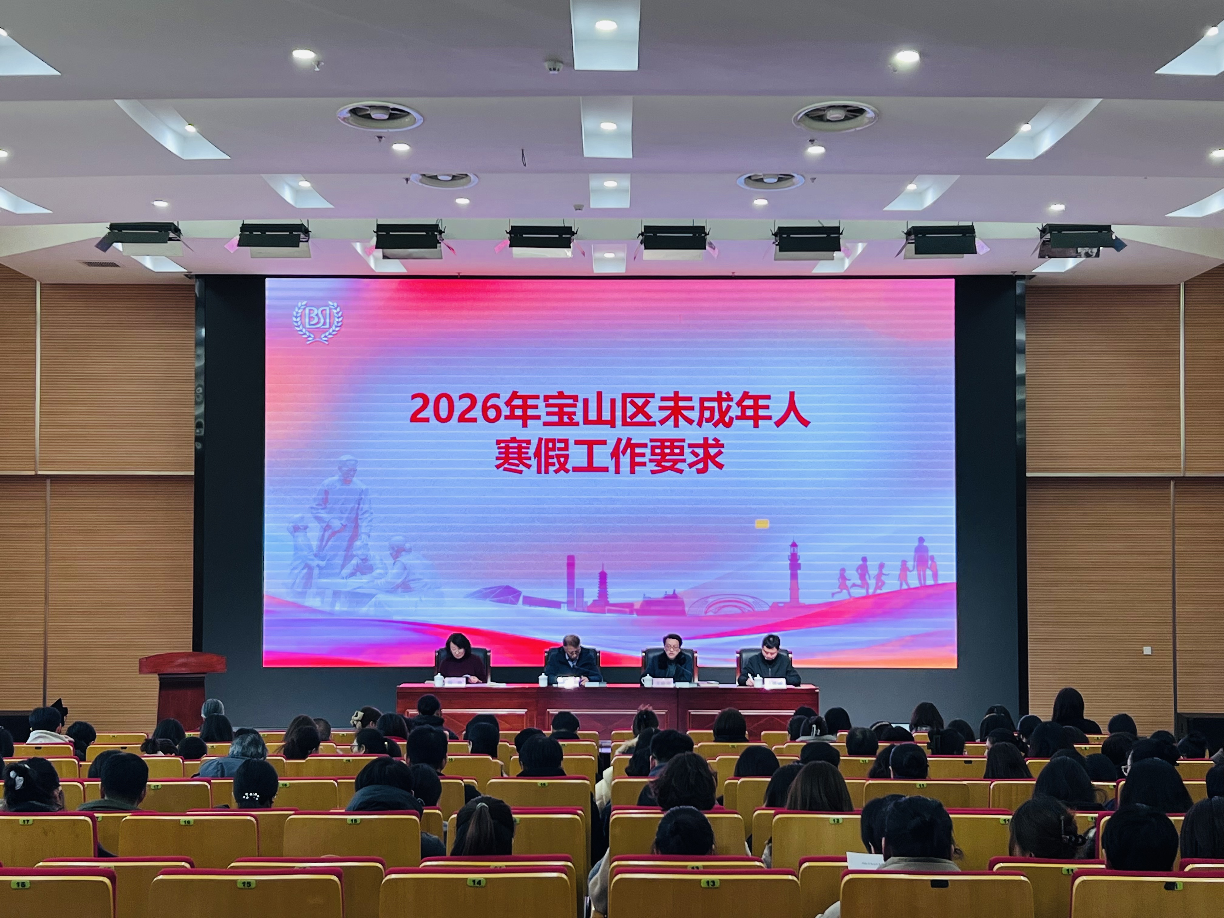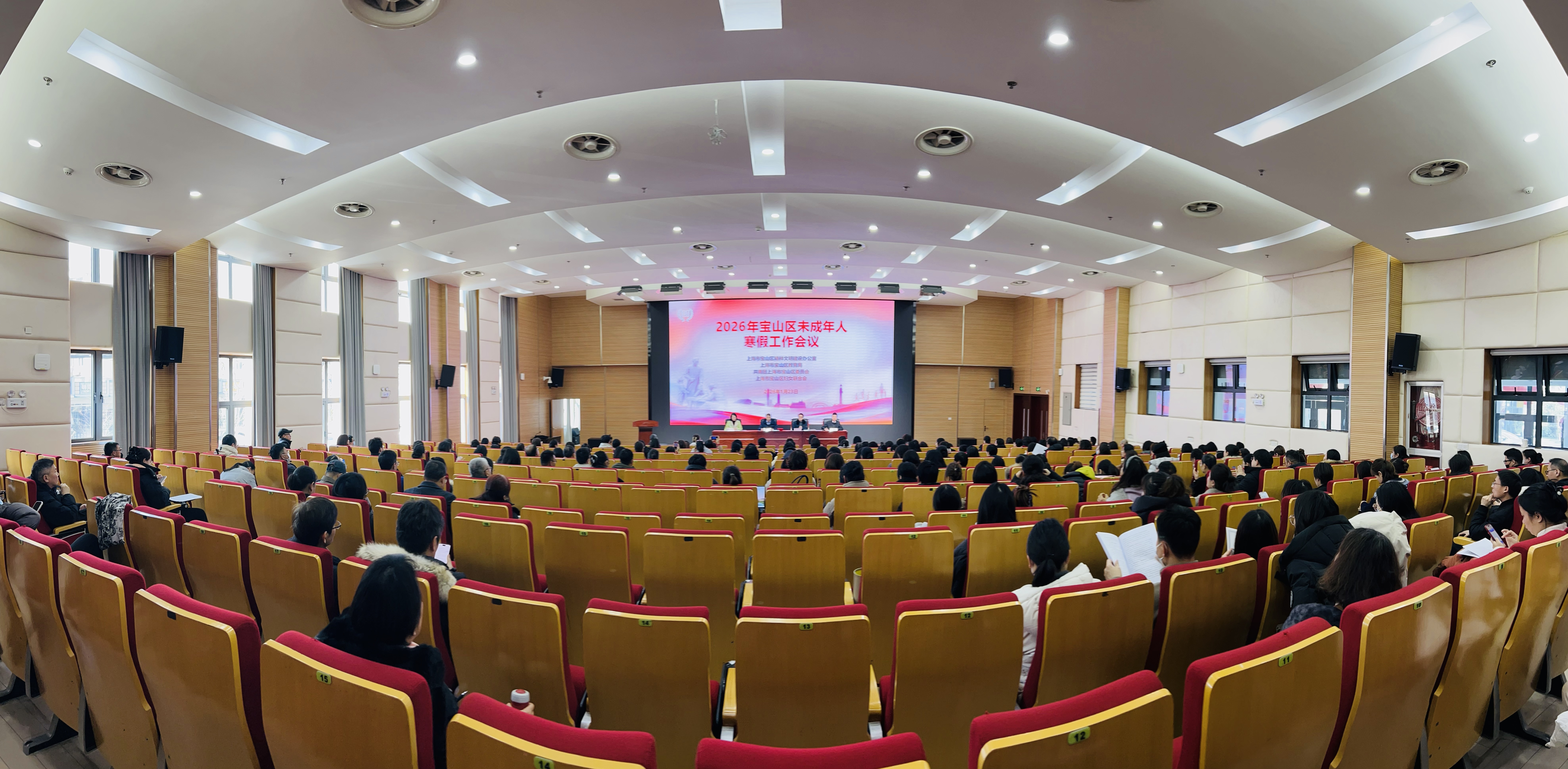 为深入学习贯彻习近平总书记关于未成年人思想道德建设的重要指示精神,紧紧围绕立德树人根本任务,持续深化“宝山少年行”未成年人社会实践活动品牌,广泛开展社会主义核心价值观教育,丰富广大未成年人寒假生活,引导他们度过一个平安、健康、快乐、有益的假期,1月23日下午,宝山区召开2026年未成年人寒假工作会议,区委宣传部三级调研员韦文生主持会议,区教育局副局长王晓波、区妇联副主席杨艳、团区委副书记王凯卿,全区未成年人思想道德建设工作相关单位负责同志及全区各中小学德育分管领导、德育主任共同参加会议。