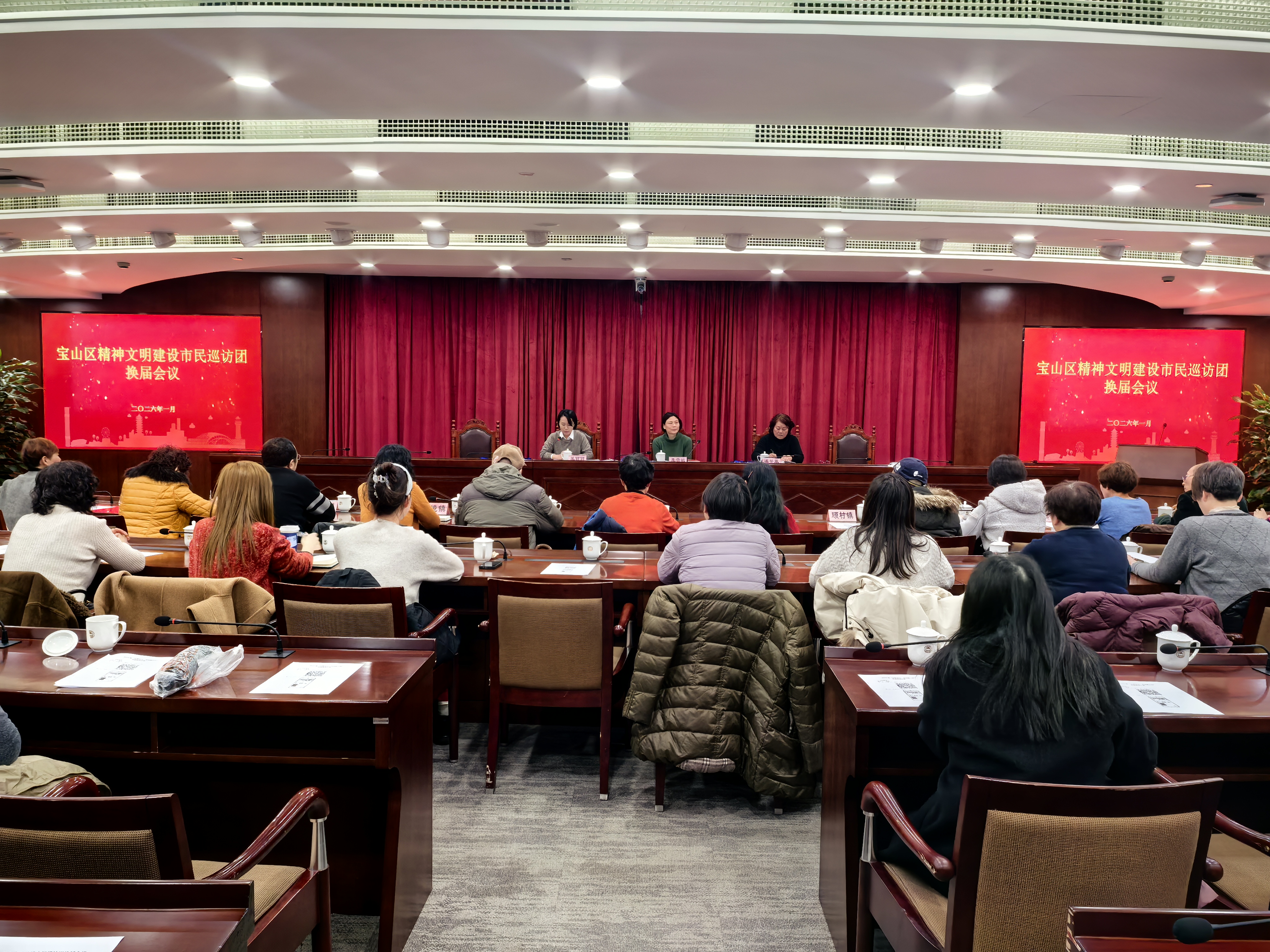 1月30日下午,宝山区召开第六届精神文明建设市民巡访团换届工作会议。区文明办副主任李雪敏出席会议并讲话。区文明办文明创建科负责人、第六届宝山区市民巡访团全体成员、离任团员代表等50余人参加会议。