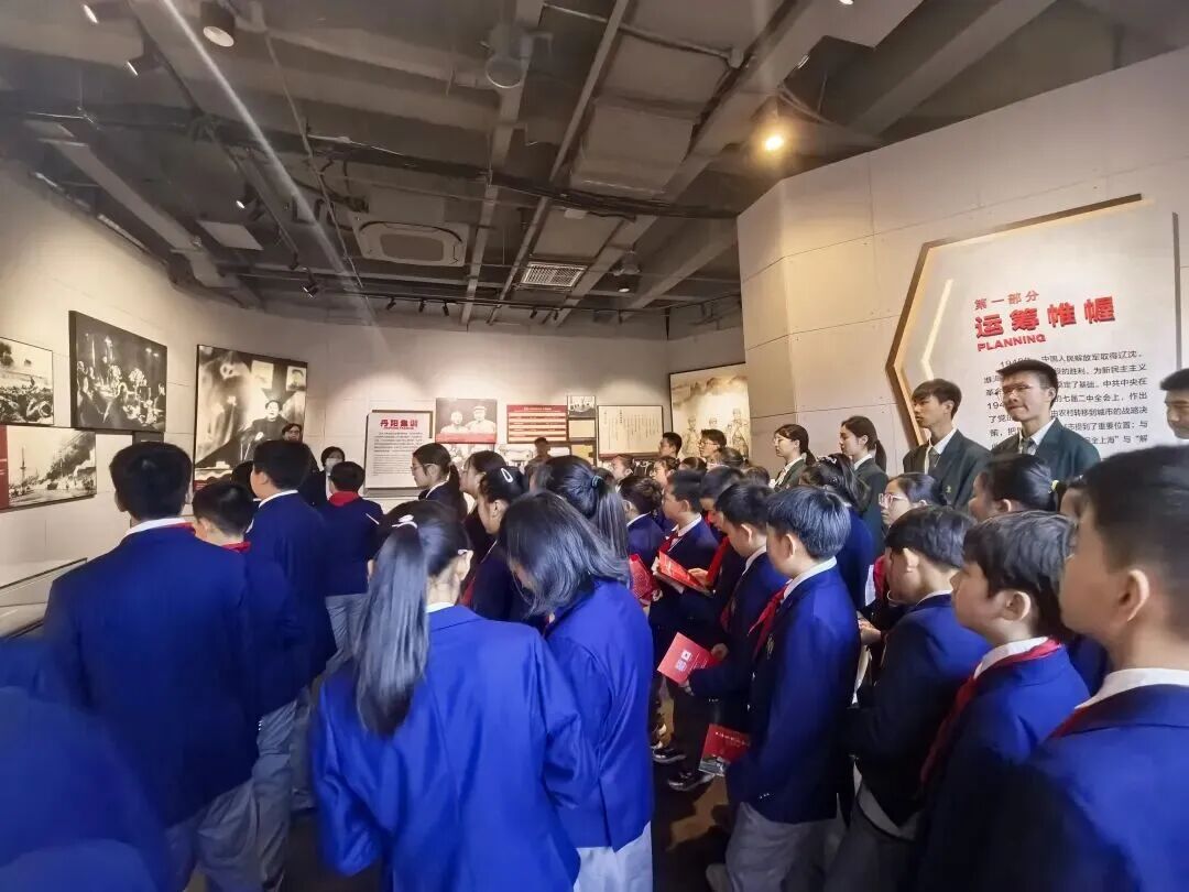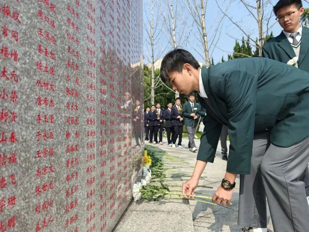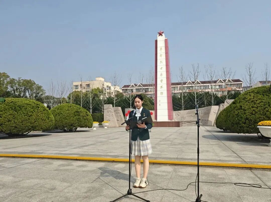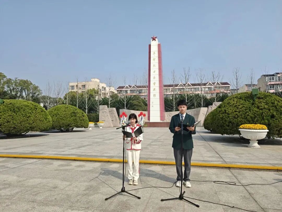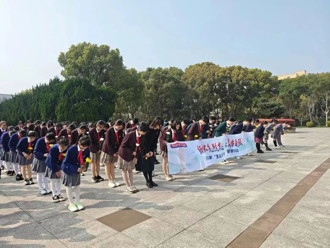 《缅怀英烈志 争做好少年》倡议 仪式结束后,全体人员依次向烈士纪念碑敬献鲜花。 学生代表跟随宣讲员走近上海解放纪念馆重温宝山革命斗争的峥嵘岁月。