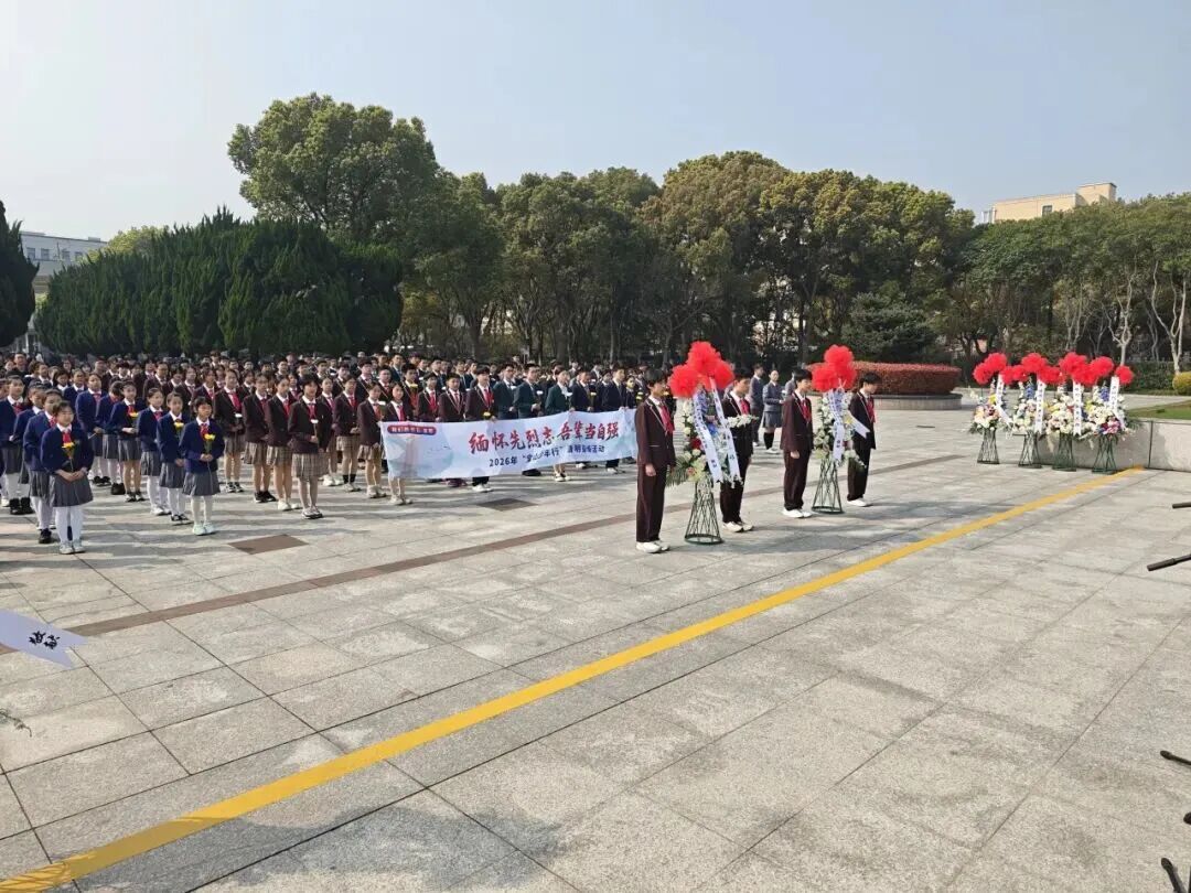 今年是中国共产党成立105周年、中国工农红军长征胜利90周年,为深化爱国主义教育,落实立德树人根本任务,区文明办、区教育局、团区委、区妇联联合组织开展“缅怀先烈志 吾辈当自强”——2026年“宝山少年行”清明祭悼活动。 4月2日上午9时,宝山烈士陵园内气氛庄严肃穆,“宝山少年行”清明祭悼仪式在这里举行。区文明办、区教育局、团区委、区妇联相关负责同志与200余名中小学生代表参加活动。